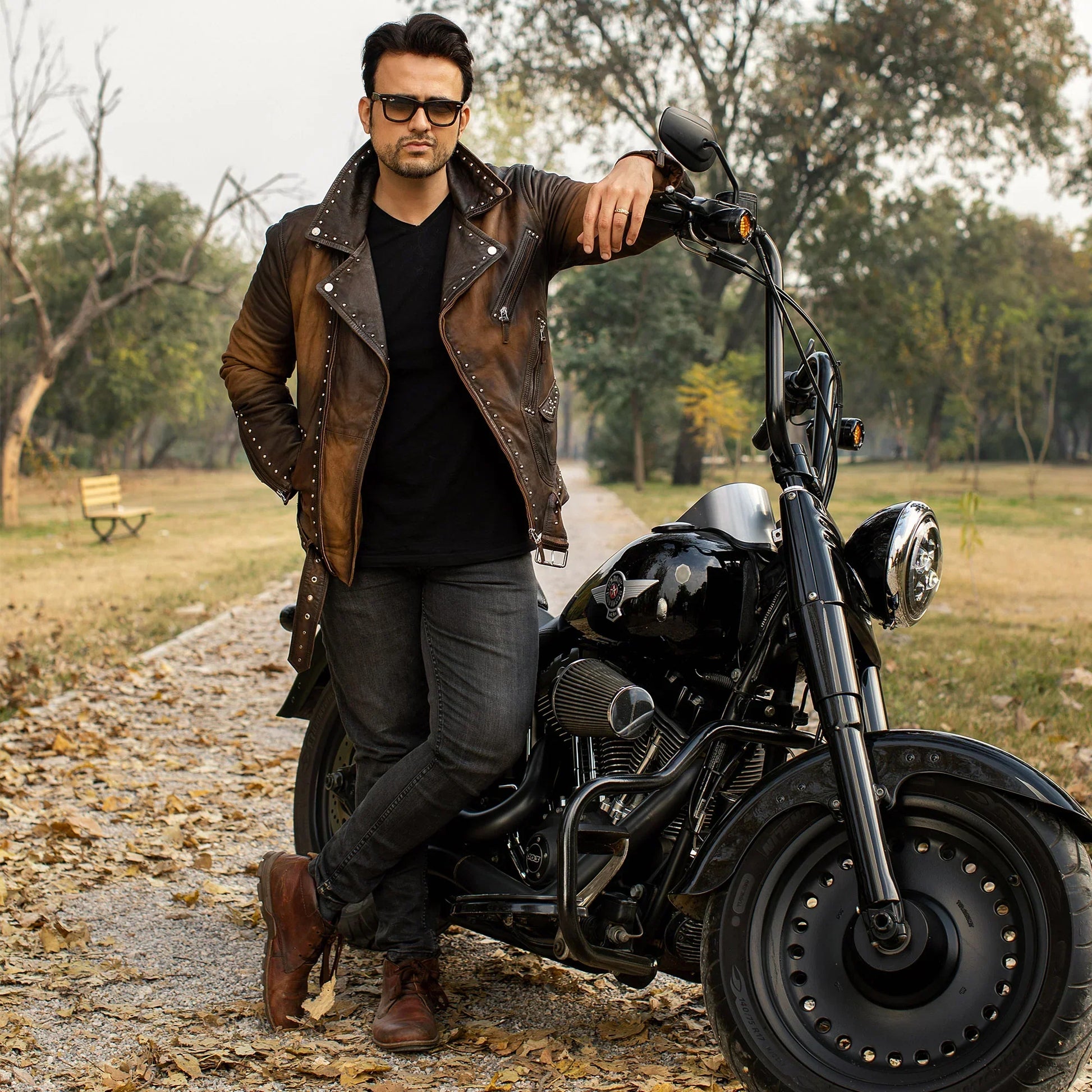 The Vintage Studded Genuine Leather Jacket is a bold statement piece that combines classic leather craftsmanship with a touch of rebellious flair. Made from premium genuine leather, this jacket is adorned with intricately placed studs, giving it a vintage, rock-inspired look. Perfect for those who appreciate timeless style with an edge, this jacket is designed to stand out while providing durability and comfort.