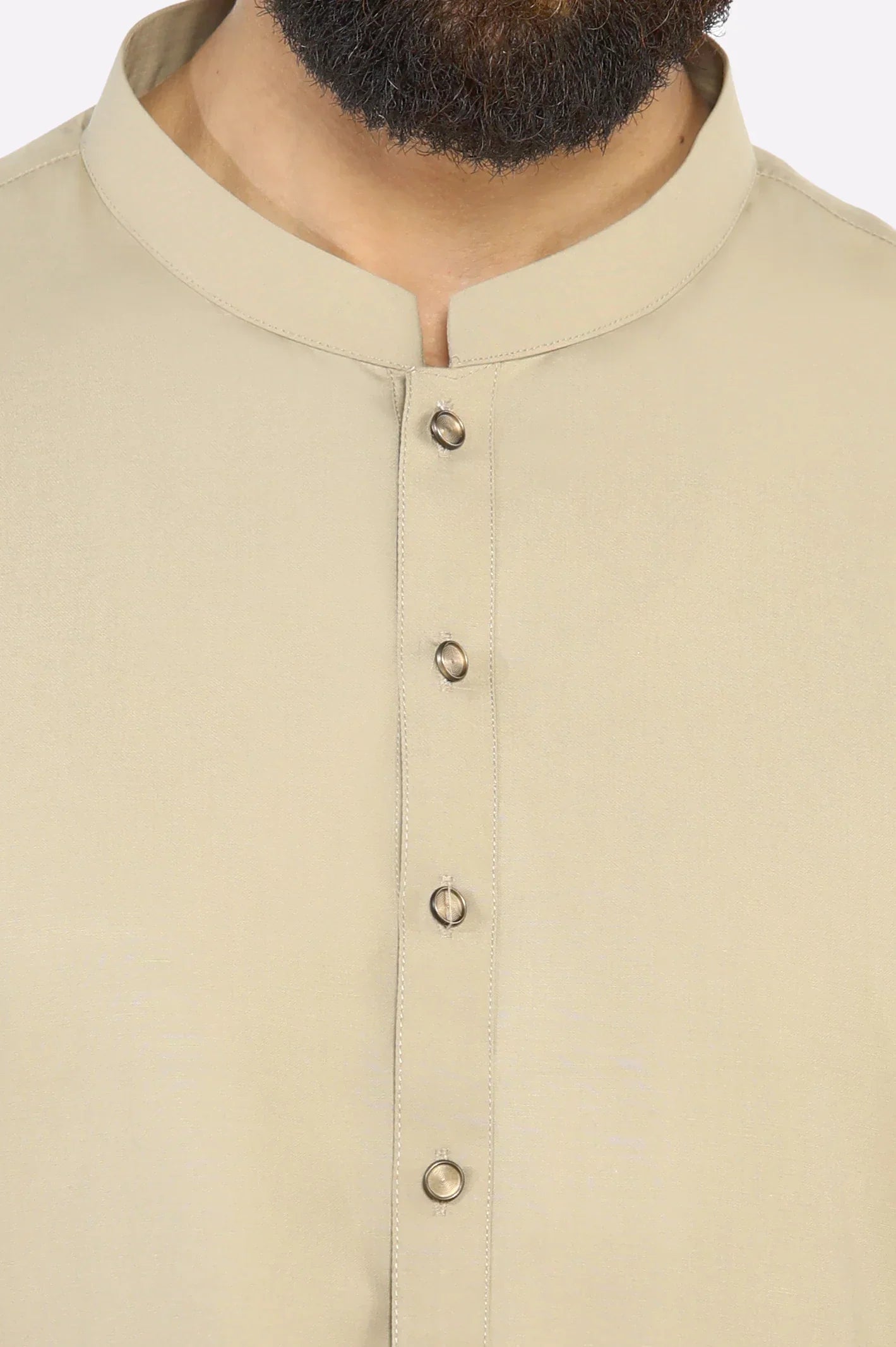 Upgrade your wardrobe with this premium fawn shalwar kameez, a timeless combination of sophistication and convenience.