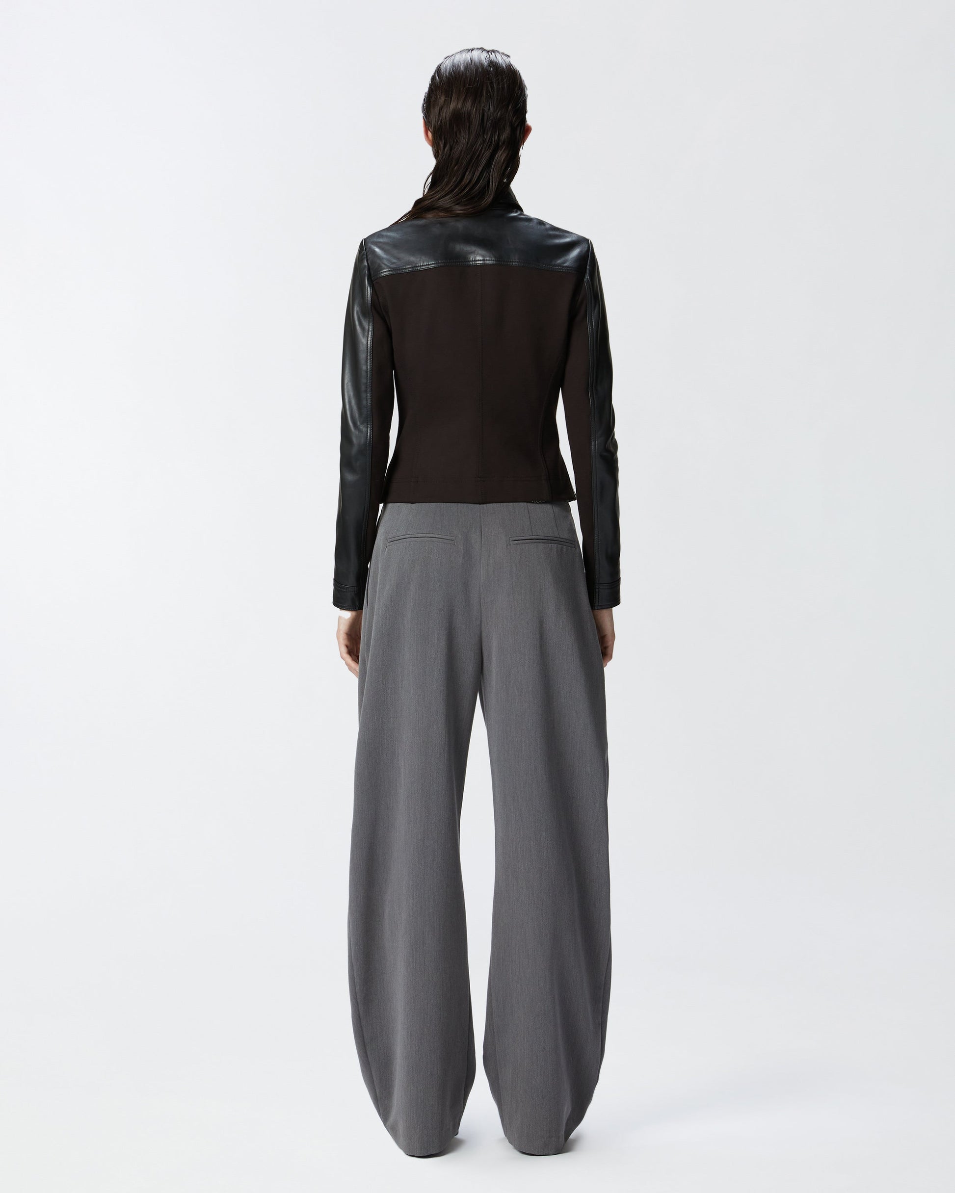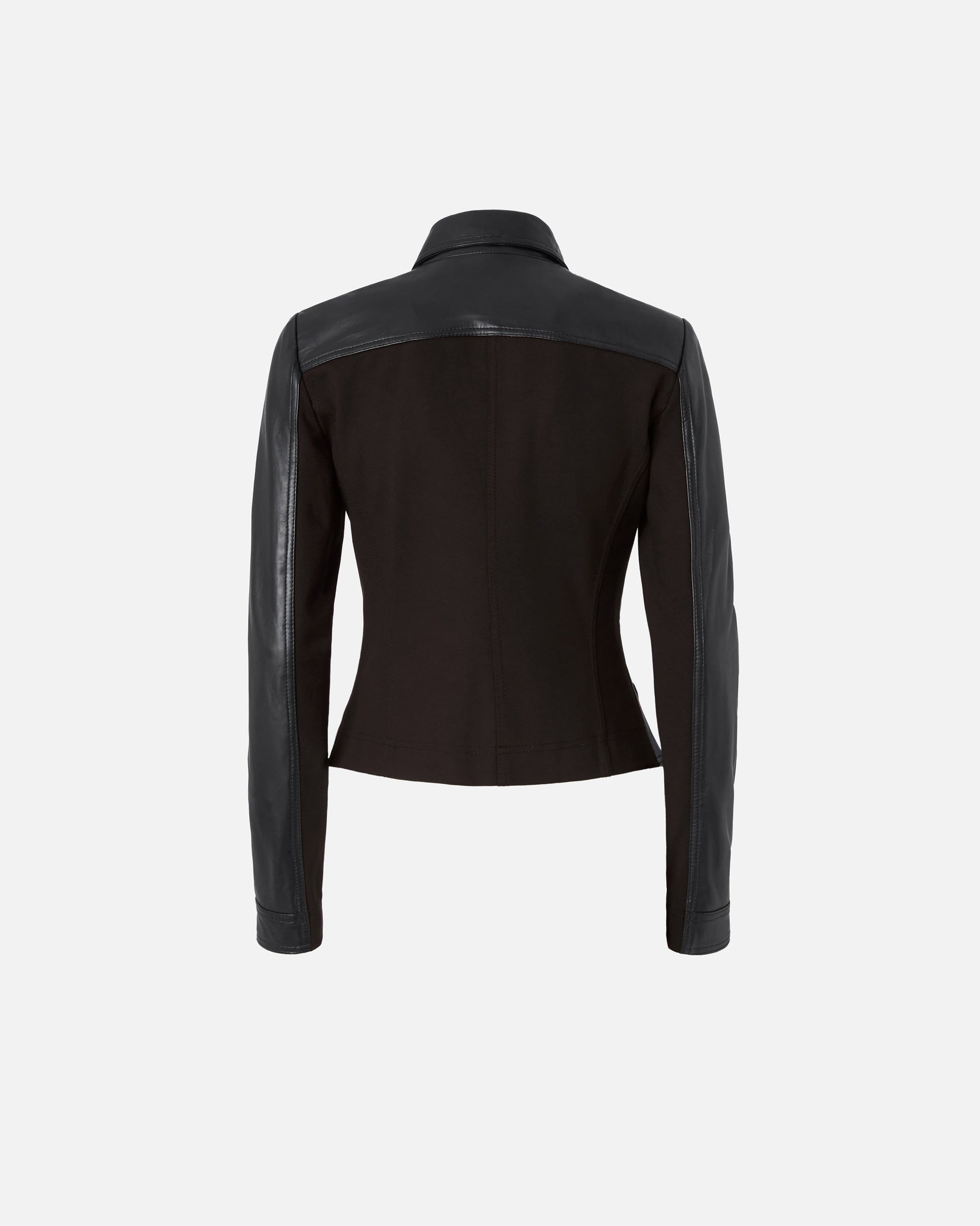 Embrace the blend of luxury and innovation with this Genuine Leather & Performance Fabric Biker Jacket, crafted for those who demand both style and functionality.