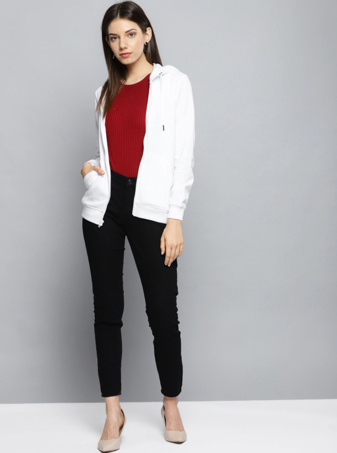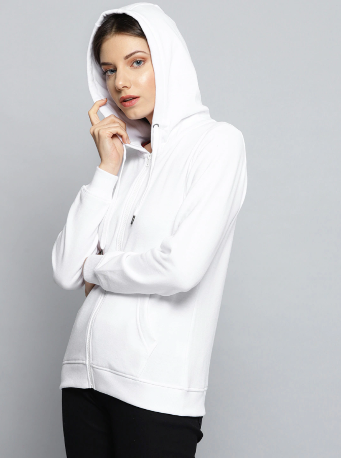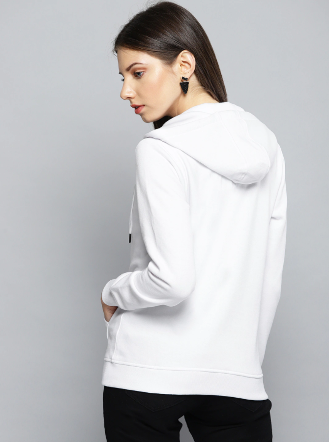 HB INDUSTRIES Women White Solid Hooded Sweatshirt New Edition
