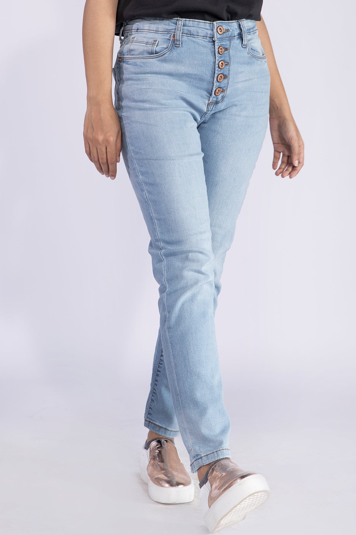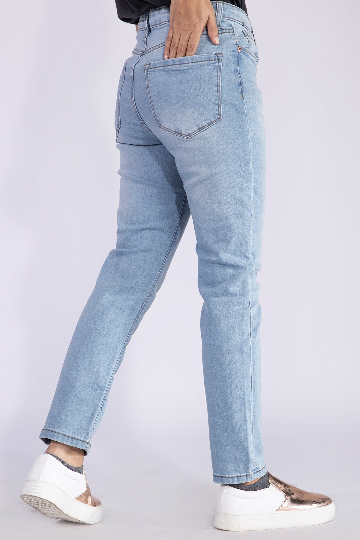 This High Rise Ice Blue Jeans is soft and stretchy. Made with super-soft cotton, it is curated to keep your shape intact, Featuring two back and front pockets it comes with a button-up waist, necessary for a flattering look, fits like a second skin.