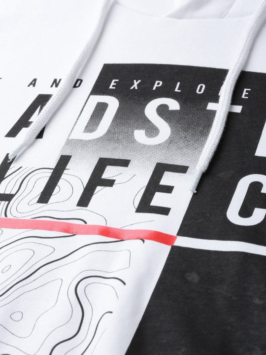 Men White & Black Alphanumeric & Graphic Print Hooded Sweatshirt – Trendy Hoodie in Pakistan