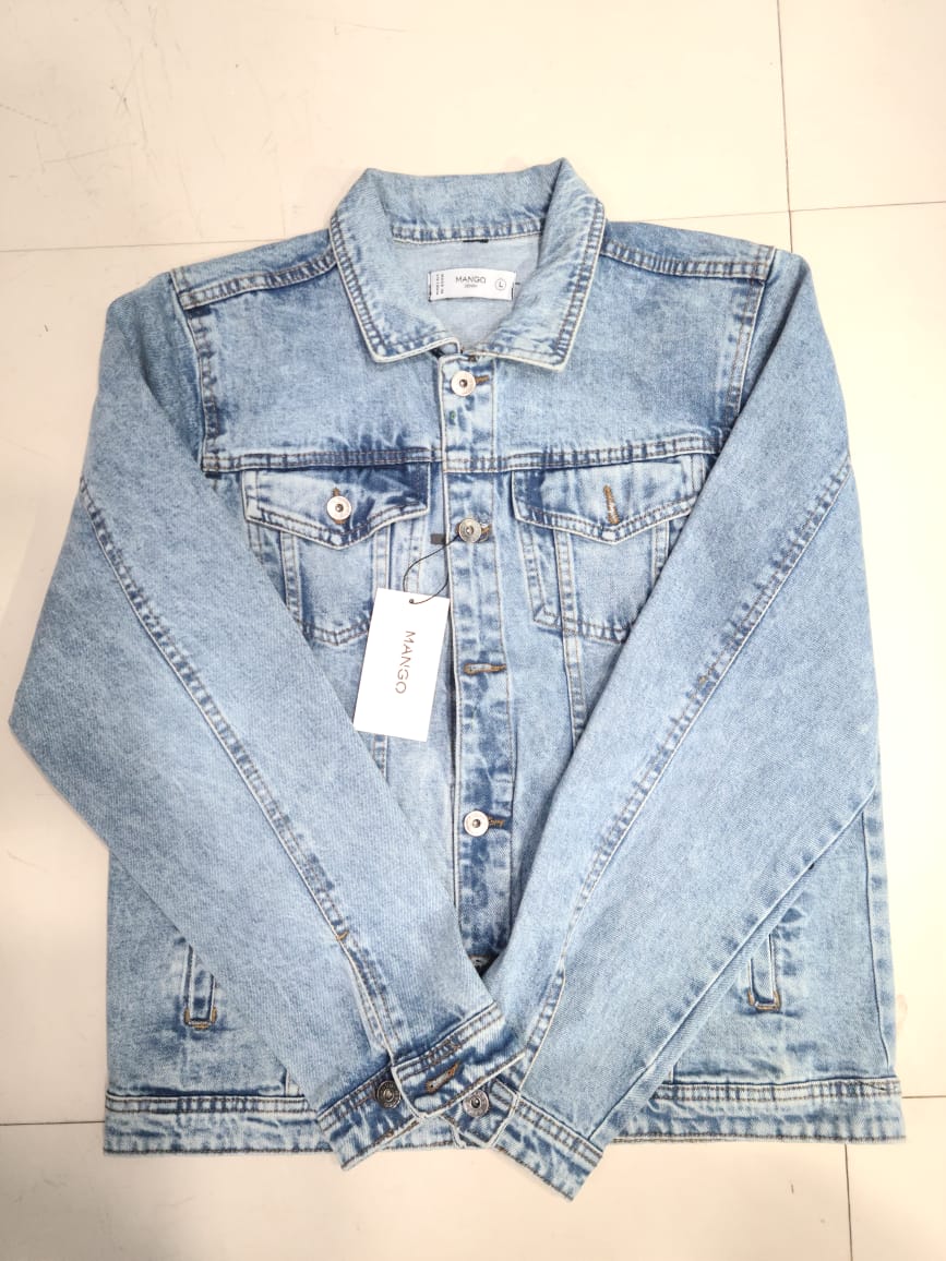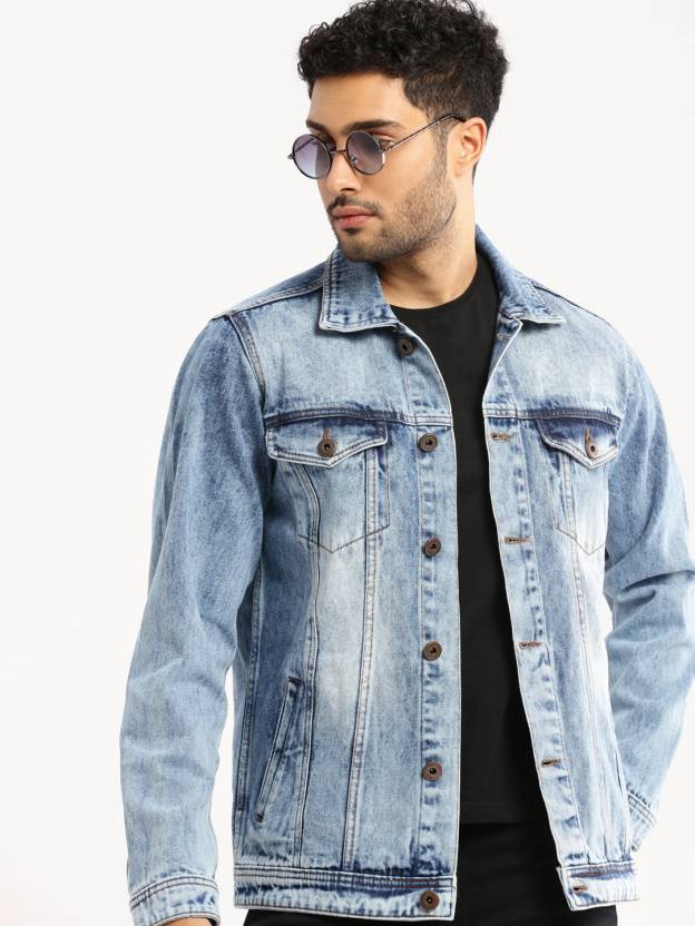 Men's Distressed Light Blue Denim Jacket Stretchable