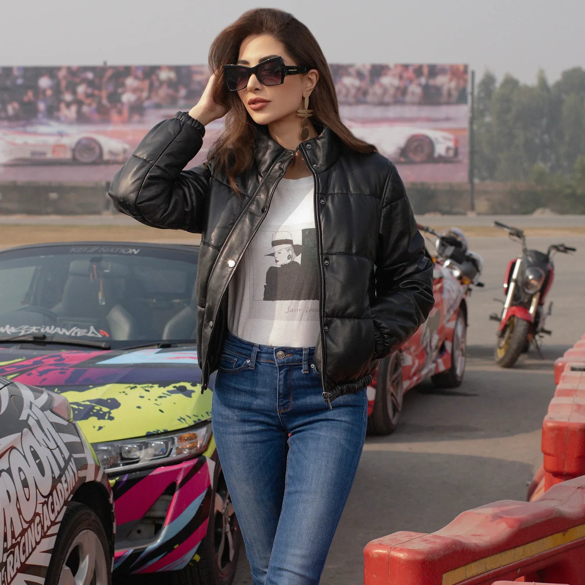 Unleash your edgy side with the Quilted Bomber Women Black Leather Jacket, a timeless piece that combines elegance with a modern, bold look. Perfect for both casual and semi-formal occasions, this jacket enhances your wardrobe with style and functionality.