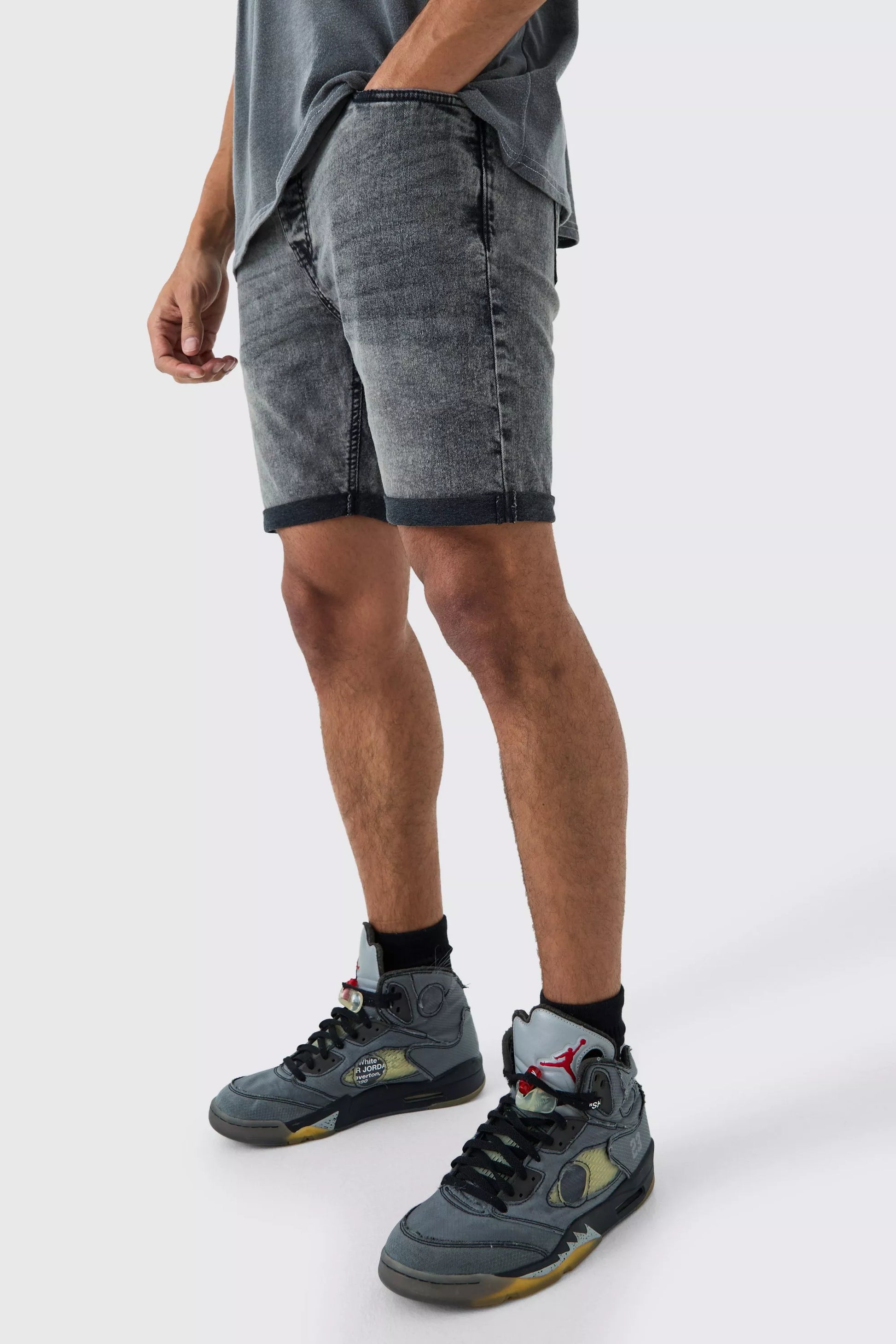 Introducing our Skinny Stretch Denim Shorts in Charcoal, the perfect blend of style and comfort for your summer wardrobe. Crafted from premium stretch denim, these shorts offer a sleek silhouette with a touch of sophistication in charcoal gray.
