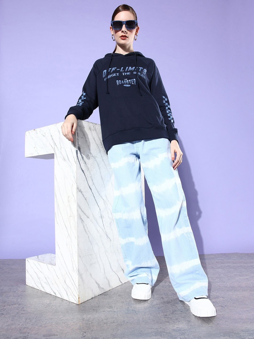 This cotton hoodie is easy to care for – machine washable, durable, and long-lasting. Its color-retaining fabric ensures that the navy blue shade and bold typography print remain vibrant after multiple washes, making it a sustainable choice for everyday wear.