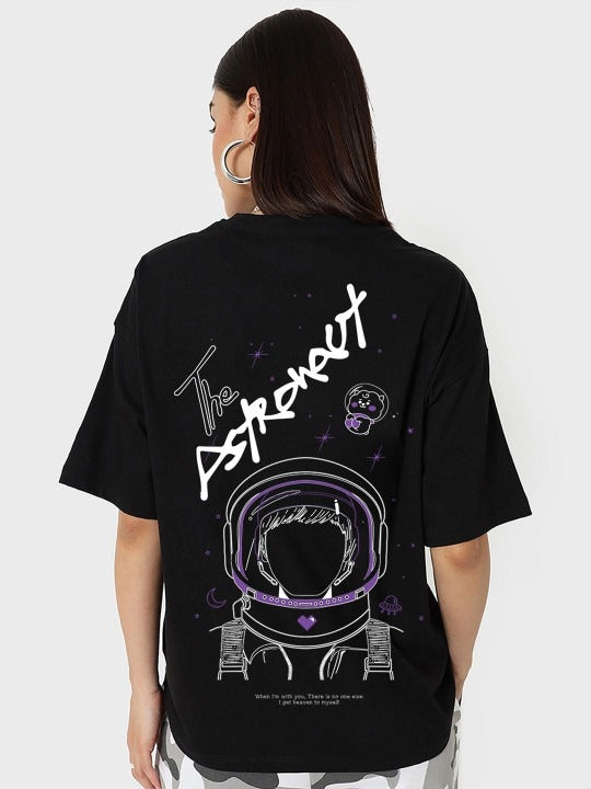 Women Printed Drop-Shoulder Sleeves Pure Cotton Oversize T-Shirt